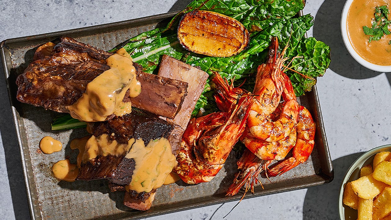 Short Rib Served with Prawns in Creamy Brandy Jus